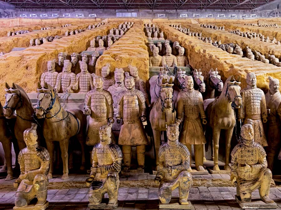 جيش التيراكوتا أو جيش الطين، الذي يعد العجيبة الثامنة بعد عجائب الدنيا السبع. يعود تاريخه لأكثر من 2100 عام، وهو جيش لآلاف من جنود الطين التي تم العثور عليها تحت الأرض في مدينة شيان مجهزين بكافة الأسلحة والخيول والعربات.