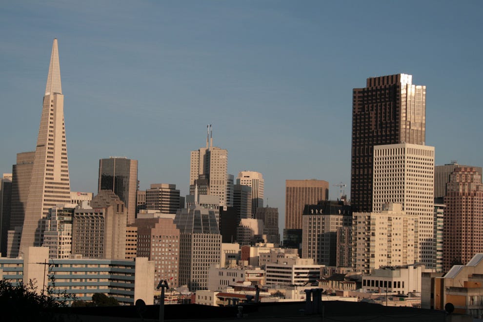 موعدك اليوم مع جولة في مدينة سان فرانسيسكو تبدأها بعد وجبة الإفطار بزيارة الحي المالي وترانس-أمريكا بيراميد، وهي أطول ناطحة سحاب في مدينة سان فرانسيسكو.