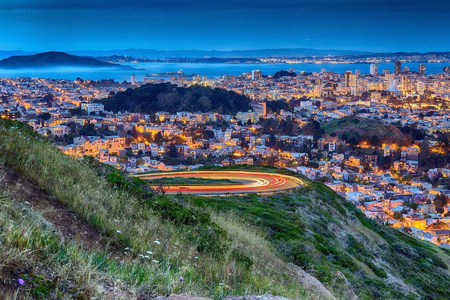 أيضا ستستمتع بمنظر بانورامي من قمم التوأم، وهما تلال بارزة تقع قرب المركز الجغرافي لمدينة سان فرانسيسكو، وتلتقط صورا لجسر البوابة الذهبية من مسرح فنون الاستعراض في سان فرانسيسكو، وتذهب إلى مركز تسوق ساحة غيراريلي وتختم جولتك عند مرسى الصيادين ورصيف 39 وتستقل عربات التلفريك الممتدة خلال شارع السوق ومرسى الصيادين.