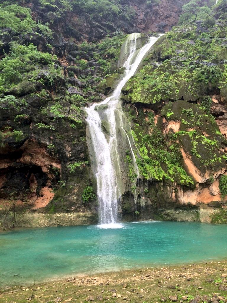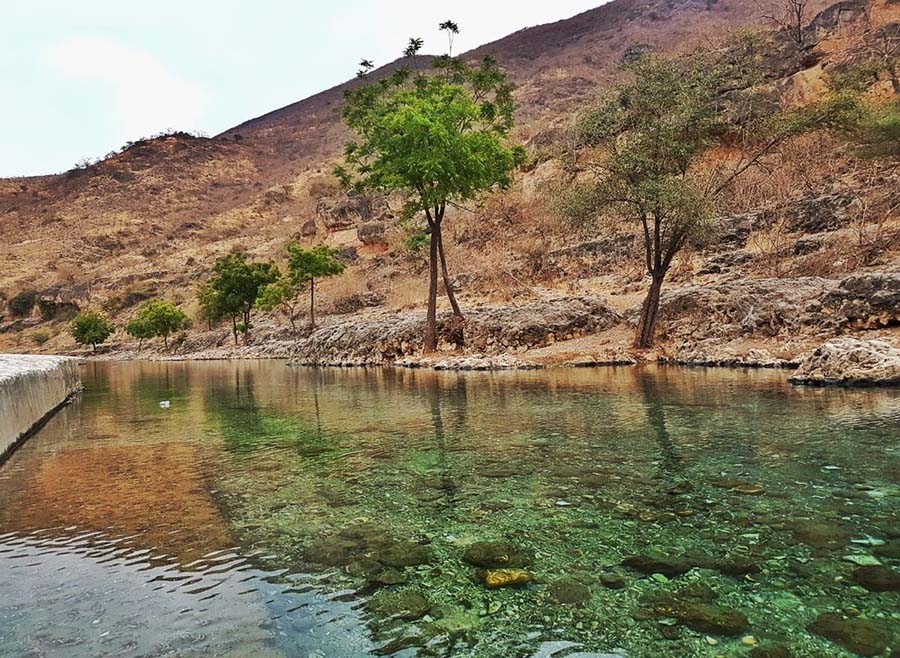 Ain Razat is the most important source of spring water in Dhofar. It used to be one of the main sources of water for Salalah. Its water as well as several smaller springs flows into a long pool on the northern side of the carpark at the foot of the jebel. Water flows along a falaj throughout the year, although flow is highest during the khareef. This water flows 7km to Al- Maamurah Palace, the Sultan`s residence when in Salalah.